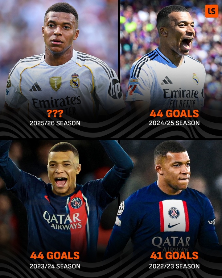 身为皇马阵中的关键球员,姆巴佩的竞技水平广受认可。26岁的法国前锋过去三个赛季均实现40球以上的进球表现,新赛季他能否维持40球基准并向50球大关发起冲击?